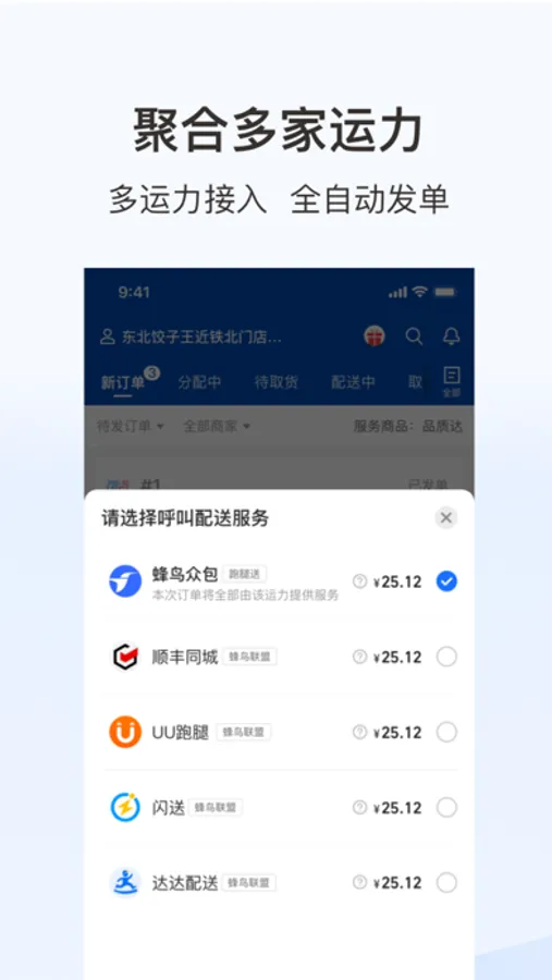 【多品牌运力】支持多品牌运力绑定,包括蜂鸟美团UU顺丰达达,