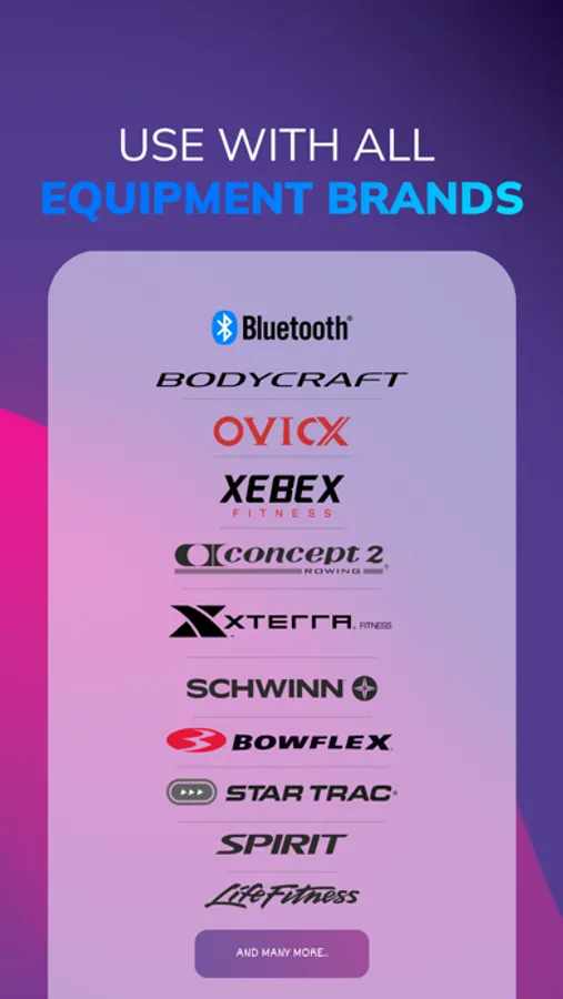 Track your performance in real-time with the Fitscope app by connecting to FTMS Bluetooth® compatible fitness equipment, including brands like Horizon®, Bodycraft®, Concept2®, Ovicx®, Xterra®, Xebex® and more.