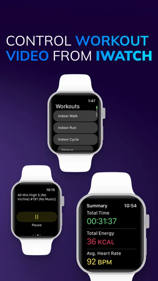 Track your heart rate, workout length, and calories burned with the Fitscope app on iWatch®. Start and pause videos and save your workouts to the Health app for easy tracking.