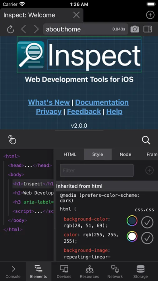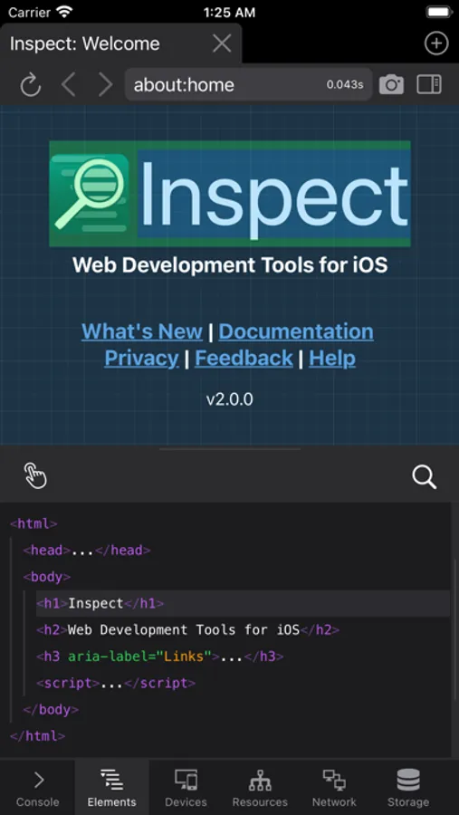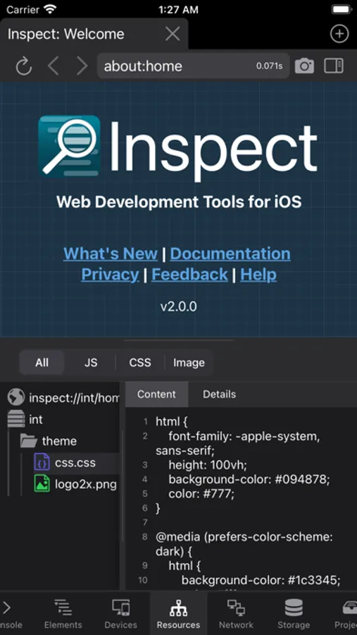 Inspect is a web inspector for iOS that provides desktop-class developer tools, right in the app. No need for remote debugging, connecting to a desktop, proxies, or remote systems.