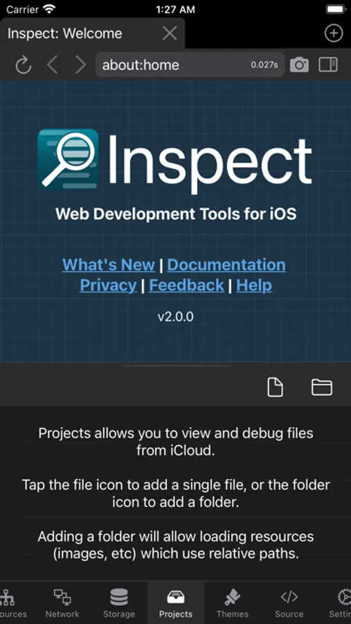- Open files and folders from other apps (like Working Copy), or from iCloud to test locally.