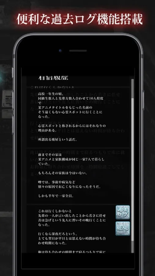 そしてこのアプリはただ怖い話を「読む」だけじゃない。珠玉の演出であなたの恐怖度を最高潮に。