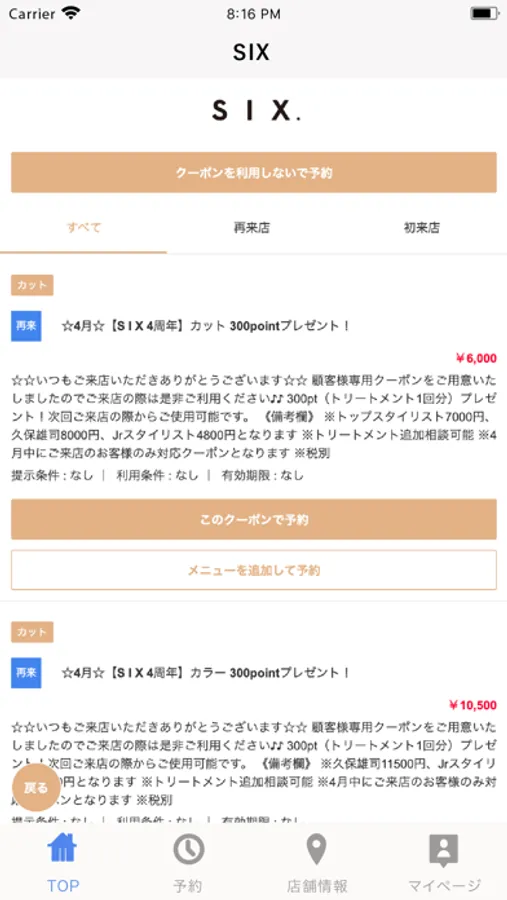 お得なクーポンが配信されます。ネット予約時にクーポン利用での予約も可能なので来店時もスムーズに施術頂けます。