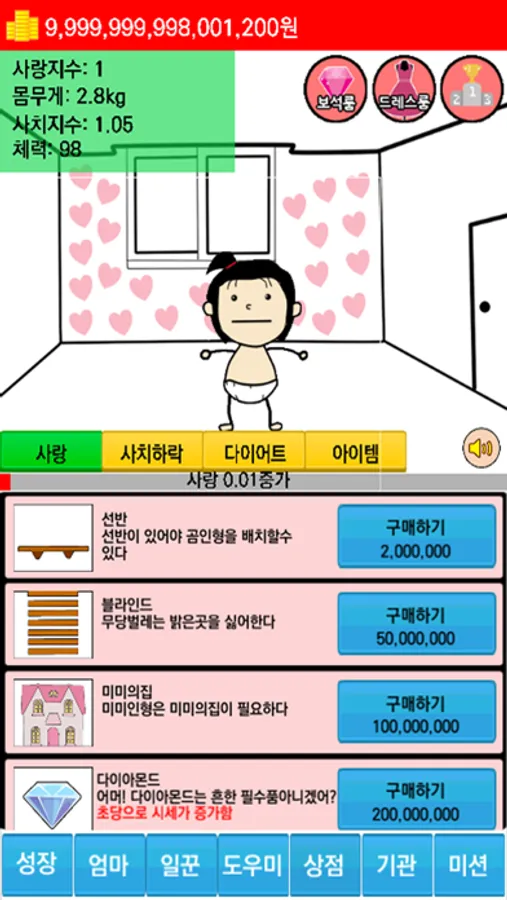 3. 다이어트 (비만이 되면 미션 클리어에 제약이 많아요)