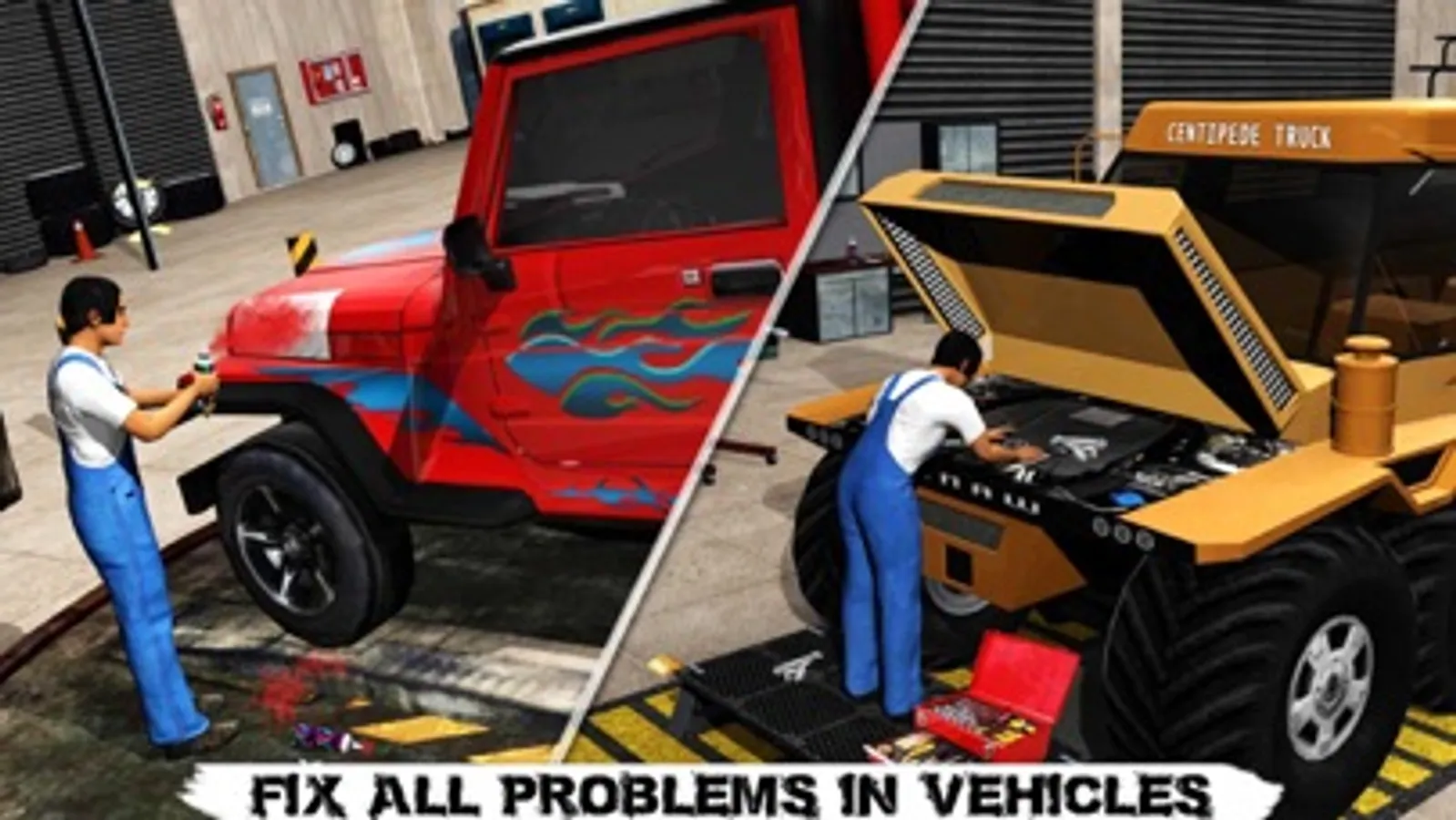 Welcome to luxury car mechanic garage. Here’s your chance to be a grand truck builder and prove your experience of welding and repairing army jeep and centipede trucks. After desert offroad races, heavy monster trucks rolled off over the grounds and get faults in their engines. Time to fix faulty machines, replace tyres with stepney, repair truck headlights or change oil and do exciting paint job. Dust off your tool box and become custom truck & auto mechanic manager. Use trucker tools to perform auto repair services in metal scrap workshop simulator. Use spray paint to color rusty parts of vehicle for a brand new look. Grand truck mechanic simulator lets you customize trucks in auto repair workshop better than other car service station games. For repairing and fixing auto vehicle, select from range of gigantic truck models: xtreme army jeep, centipede trucks or hummer. Choose different chores like replace tyres with stepney, repair truck headlights, change engine oil or painting. Do all the detailed work on truck engine.