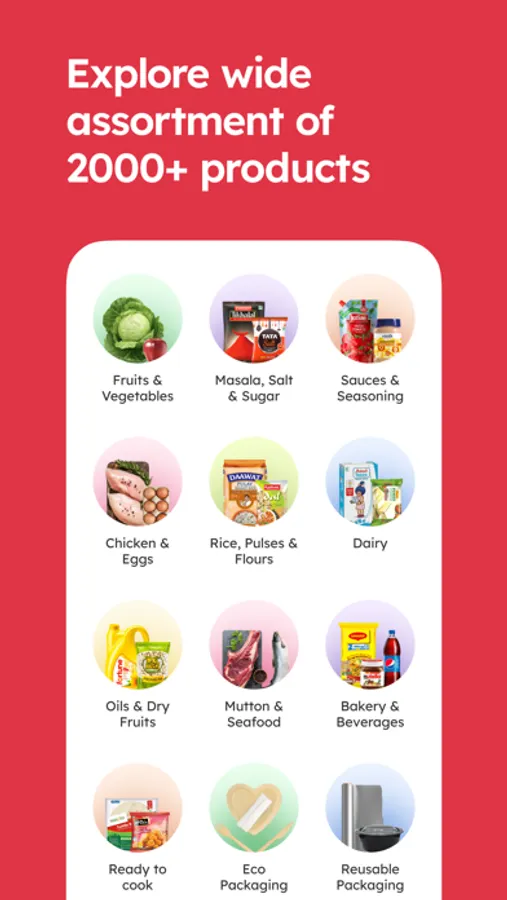 Choose from a catalogue of over 2000 products and have your supplies delivered to your doorstep in a time slot of your choice. You can make payments via credit card, debit card, net-banking and UPI.