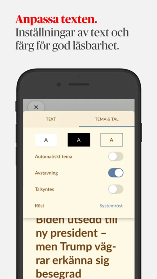 Du kan välja mellan artikelläge eller att läsa tidningssidor, du kan också välja att ladda ned en utgåva, samt ange hur länge du vill ha den sparad på din enhet.