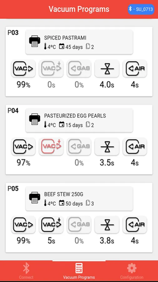The official App for the SU "Sensor Ultra" Sammic Commercial Vacuum Sealers. This App allows to manage vacuum programs remotely on the Vacuum Packing Machine, using Bluetooth technology: