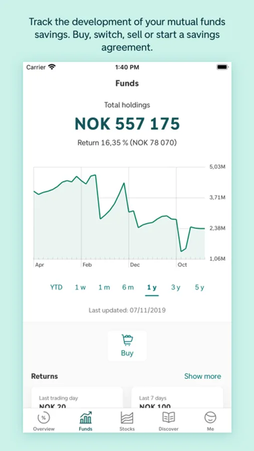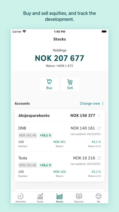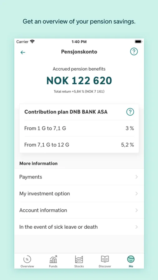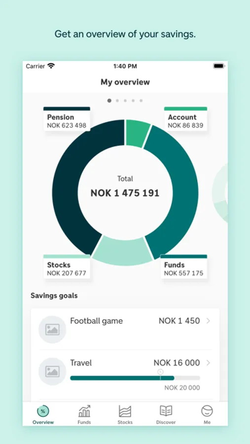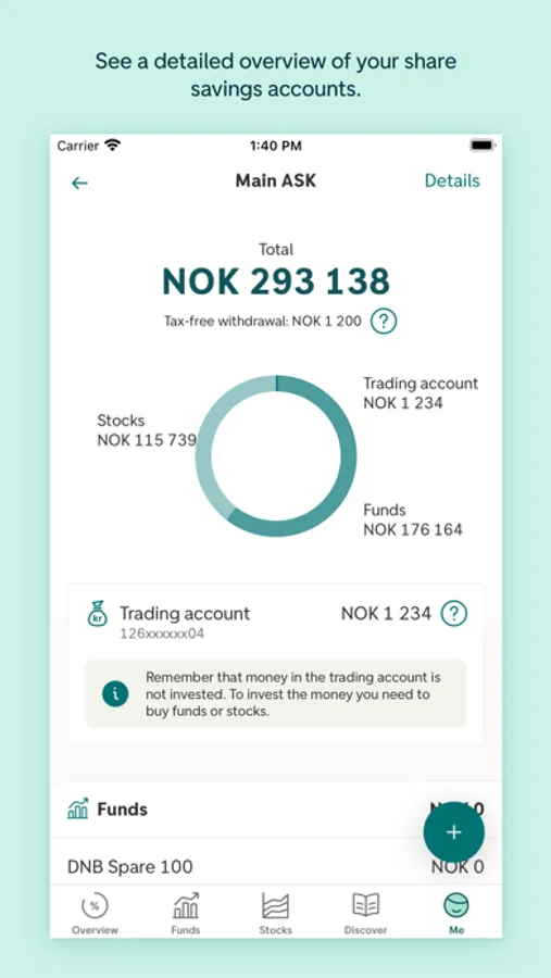 You can now log into the Spare app with your BankID from any bank. Get an overview of how much you’re saving in DNB and other banks. It’s easy to get started with regular saving, whether in mutual funds, equities (shares), or in a savings account. Small, fixed amounts can get you a long way. Explore the possibilities and reach your goals in Spare.