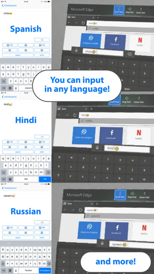 HoloKeyboard is a virtual keyboard app for Microsoft HoloLens.