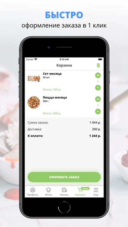 Скачивайте наше приложение, оформляйте заказ и наслаждайтесь любимой едой, где бы Вы ни были! Приятного аппетита!