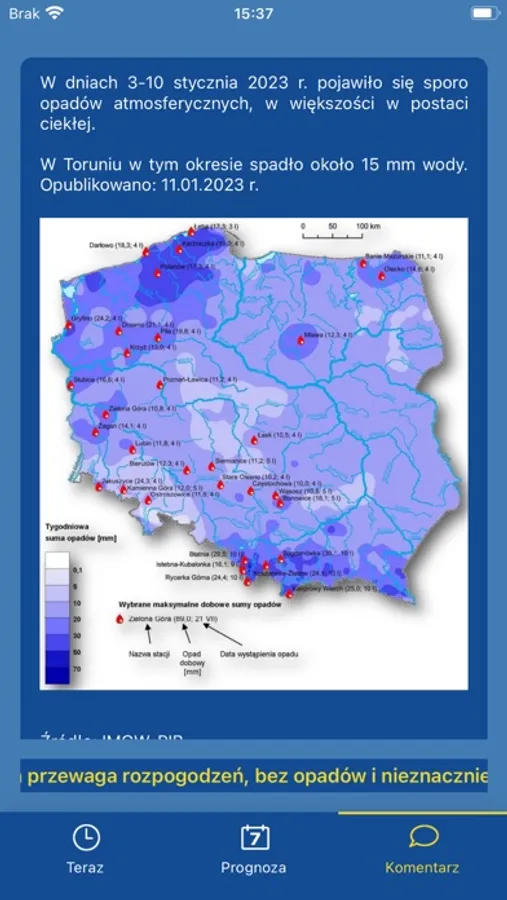 App gives possibility to be alerted on important weather news. (Requires enabling of push notifications)