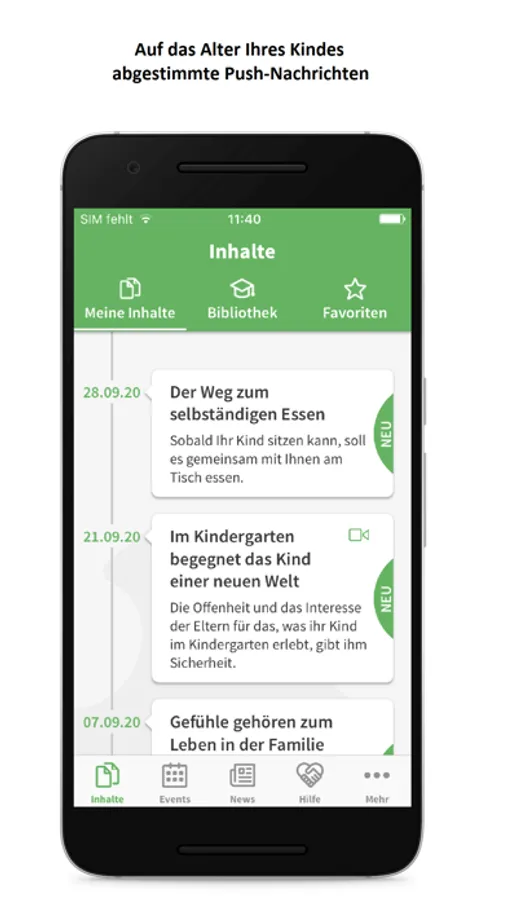 … sendet regelmässig an das Alter der Kinder angepasste kurze Texte, Bilder, Filme und Audiofiles