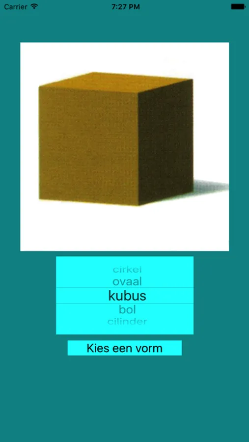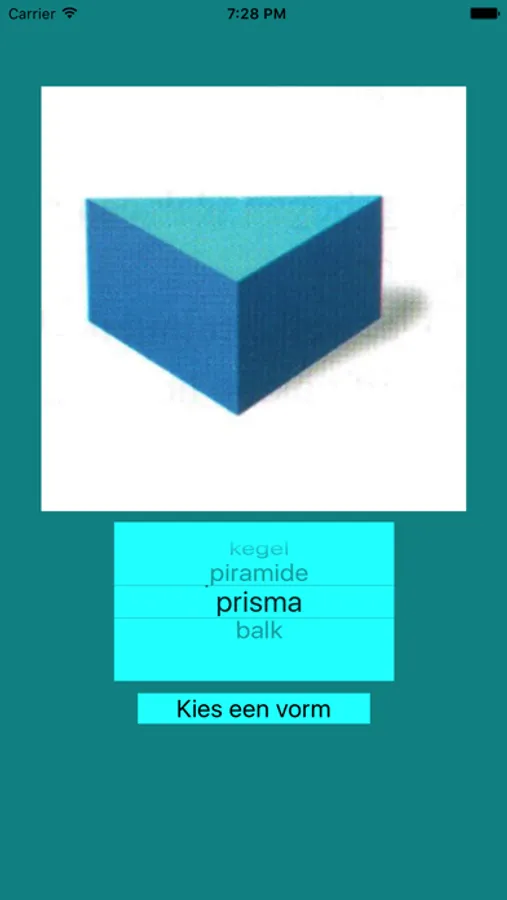 Met deze applicatie kunnen leerlingen van de basisschool kennismaken met de belangrijkste wiskundige vormen en hun benaming. De vormen worden geselecteerd met een "picker" wiel. Dan verschijnt een plaatje van de wiskundige figuur en wordt de naam in het Nederlands uitgesproken.
