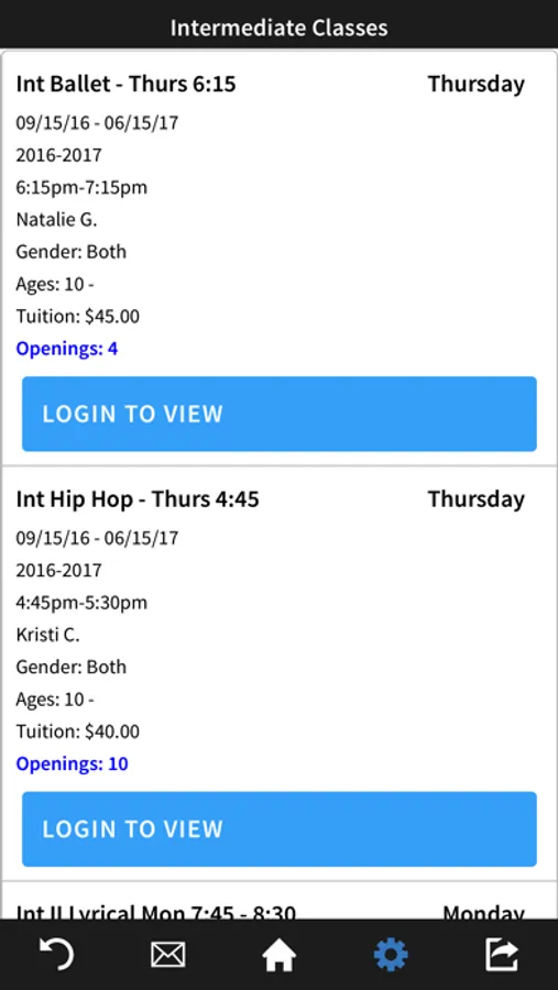 The SDA app allows you to register for 6 week, 10 week and summer classes as well as view the 9 month curriculum. Search by age or genre/style of dance.