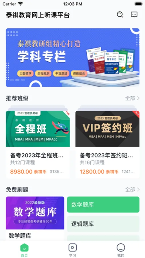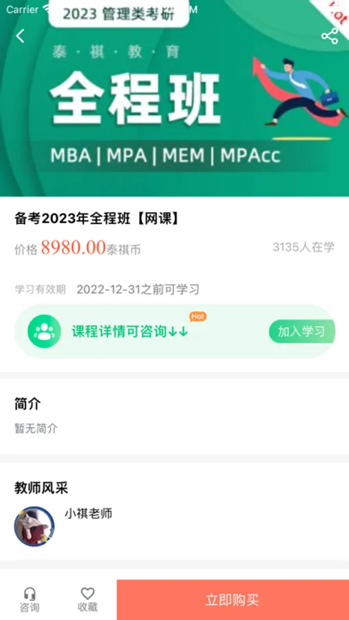 泰祺网校听课平台所提供的视频课件为成人管理类专硕研究生全国联考入学考试的笔试和面试提供有力的帮助。泰祺教育专注管理类专硕联考(MBA/MPA/MEM/MPACC等)笔面试考前辅导19年。因为专注,所以专业。泰祺教育近20年的深耕,取得了显著的成果。每年为全国各大高校提供很多优秀的生源,也帮助没时间自己归纳整理复习材料的各界精英,用最短的复习时间,考取理想的成绩。多年来深受高校的认可和学员的称赞。