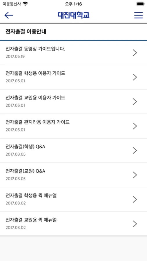 대진대학교 전자출결 서비스를 통해 학생들이 출결을 진행할 수 있도록 서비스를 제공합니다.
