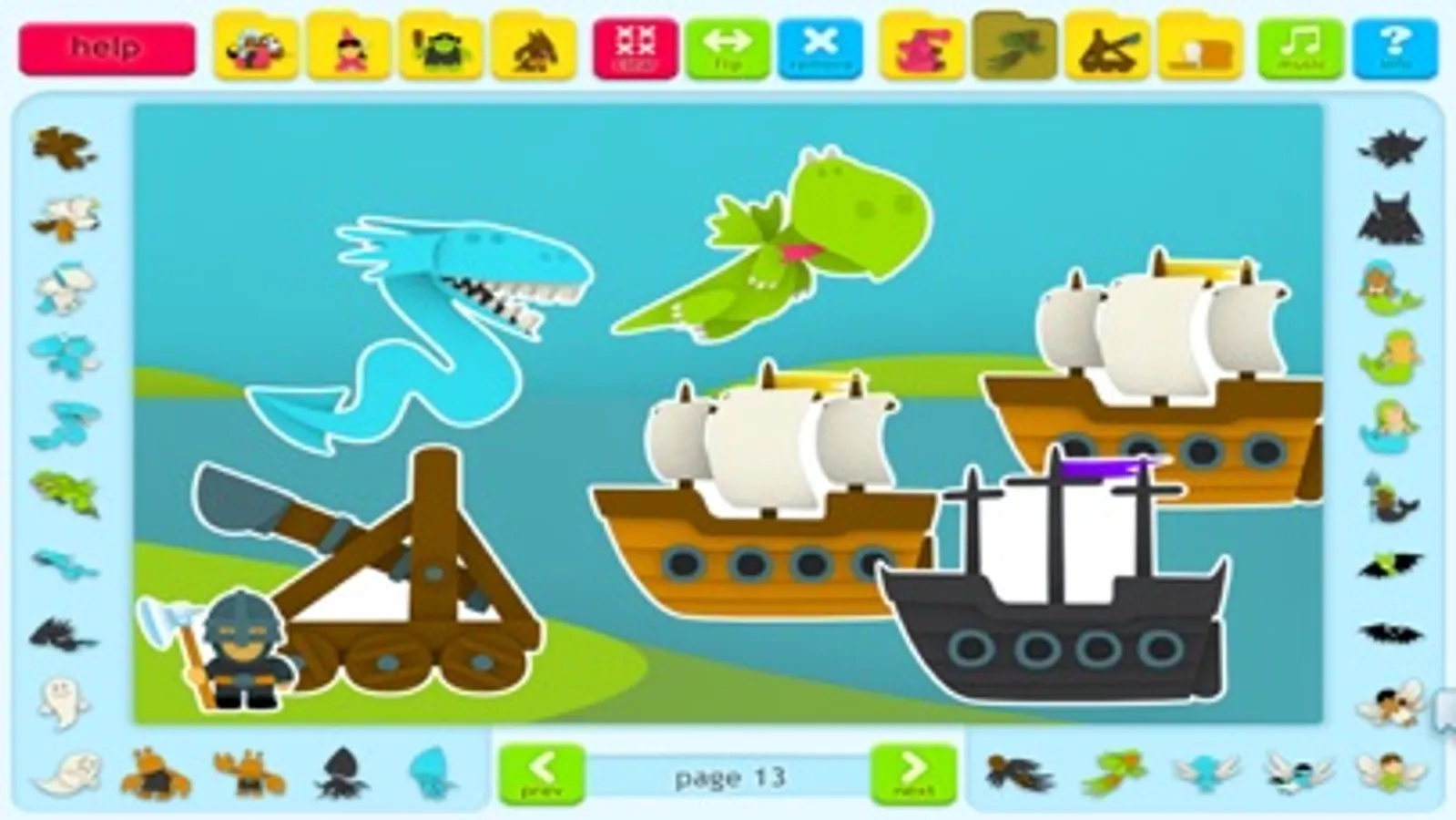 This Sticker Book has stickers from the fantasy world -- dragons, knights, princesses, monsters, and many more. Kids can create scenes using hundreds of stickers from the pretend realm and place them on dozens of backgrounds from the medieval time period. Sticker categories include: knights and wizards, kings, queens, princes, and princesses, human-like creatures, monsters that live on land, monsters that live in water or fly, landscape items, and medieval decorations. These stickers, unlike paper stickers, can be used over and over again within different scenes.