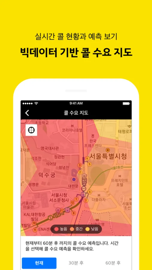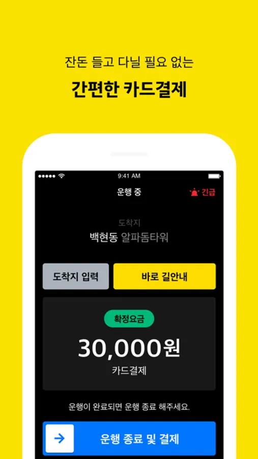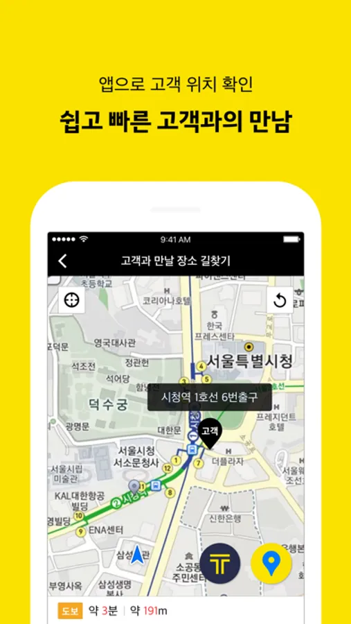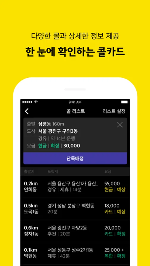 고객과의 거리, 고객과 만날 장소, 도착지, 예상요금을 정확하고 상세하게 제공합니다.