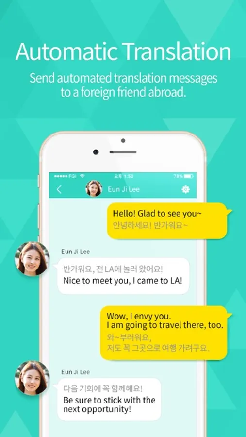 ARGO provides automatic translation of every languages. You can now send and receive unlimited messages with foreign friends even if you don't know any foreign language.