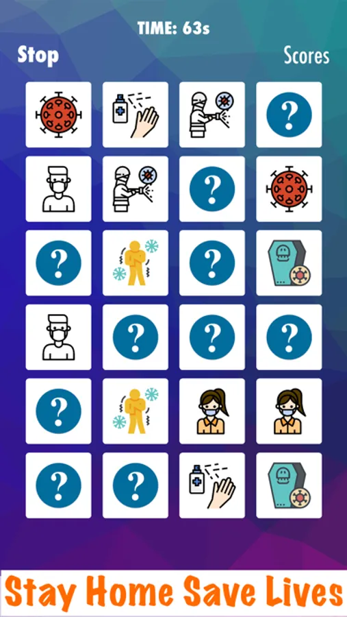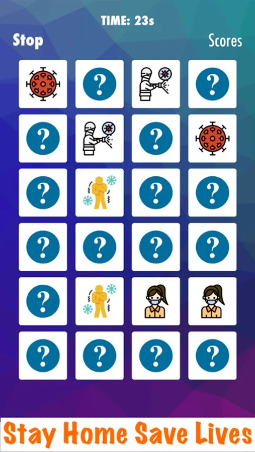 You have to find pairs of identical cards. The object of the game is to turn over pairs of matching cards. Tap to flip two cards. Match a pair and they disappear. Flip quickly. Exercices your Memory. Cards are laid out in a grid face down, and players take turns flipping pairs of cards over. When cards are turned over, it is important to remember the last position. Your kids will love. This game is very challenging.