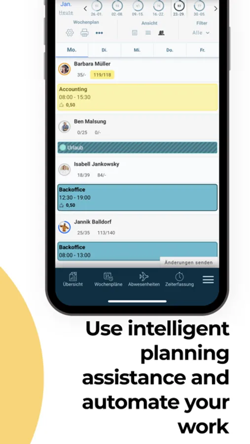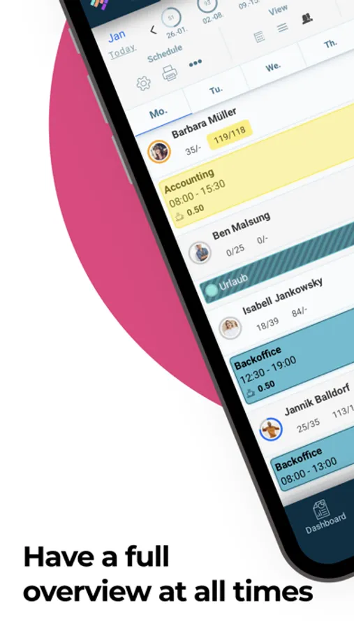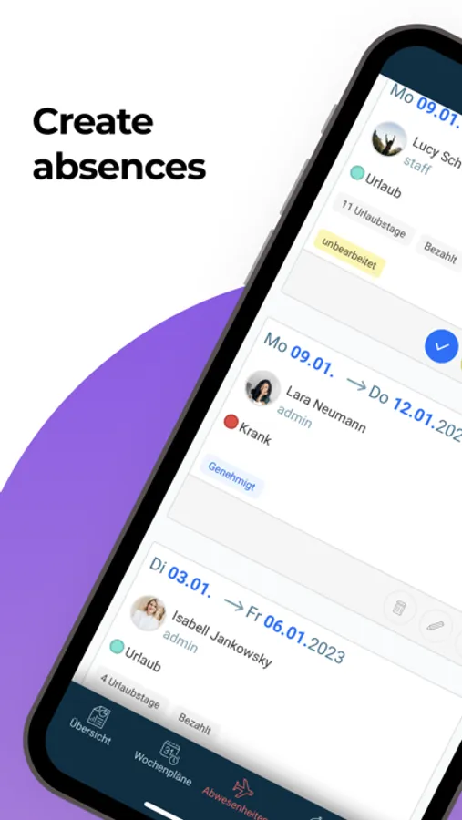 Create weekly schedules, swap shifts with colleagues, manage absences, and record your working hours – all directly from your smartphone. Changes in the plan? No problem! You receive push notifications so you are always up to date.