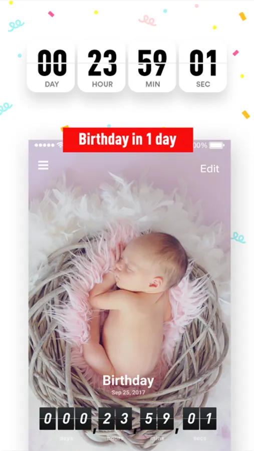 Countdown to your next event: a Wedding of anniversary, birthday of your baby, Valentine’s Day, Christmas, Halloween, the New Year, your own birthday, your child's graduation, your next vacation, holidays and more!