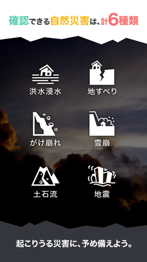 2.6種類の災害について、安全・警告・危険の3段階で表示。