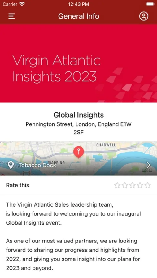 The Virgin Atlantic Events app is the best way to keep on top of all the details of the next Virgin Atlantic conference, meeting, press trip, or shindig that you’re heading to. Download to get all the latest timings, see who’s attending, find locations, ask questions and much more.
