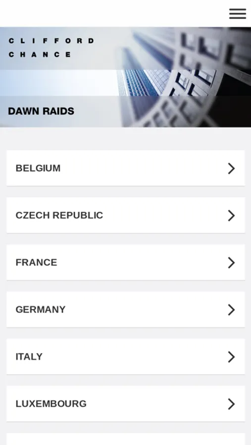 Regulatory investigations are becoming increasingly common. When faced with an unexpected visit by a regulator, our priority is to help you respond quickly and appropriately. The Clifford Chance Dawn Raids App, covering multiple regulatory authorities across Asia Pacific, Europe and the United States, gives you what you need to effectively deal with urgent situations.