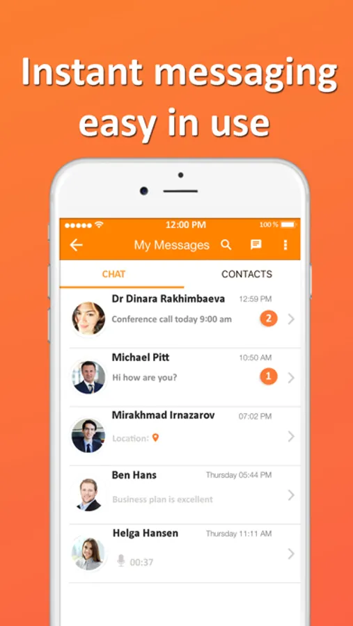 Expo-Chat is an innovative encrypted messaging platform. It is a smart business communication tool which allows users to send text messages, documents, images, videos, location, audios and contacts.