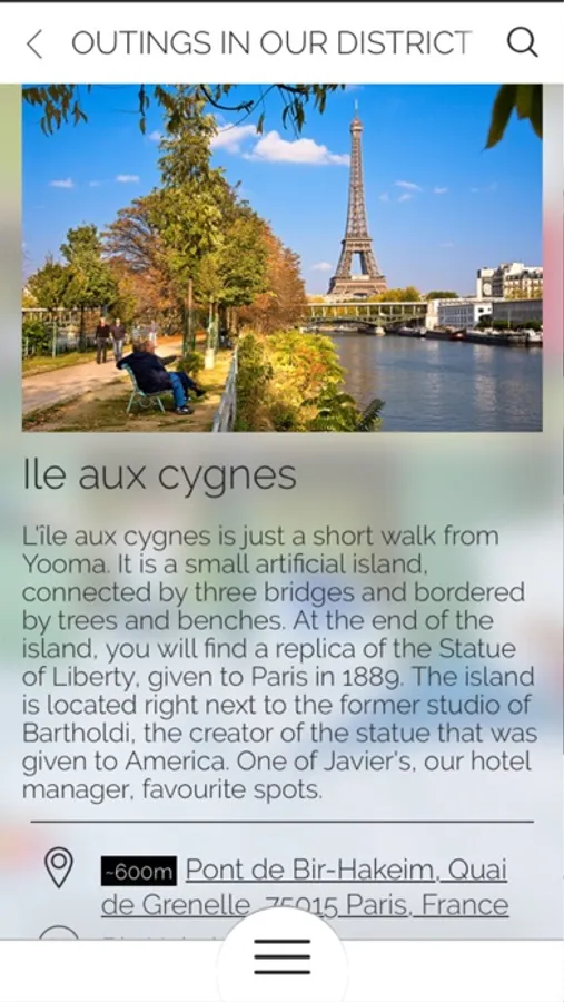 This application will help you navigate your way through the Yooma world. Book a table, a cooking class, check the list of TV channels available or find the latest fashionable bar: the Yooma application is there to make your stay in Paris easier.