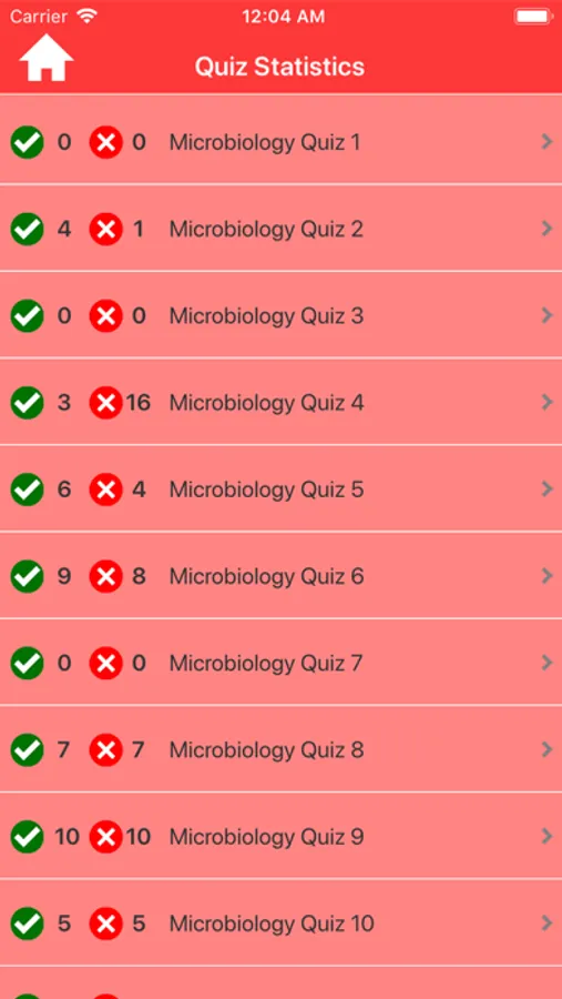 - You can review a quiz session performance details by selected a session. This screen shows quiz history performance reports.