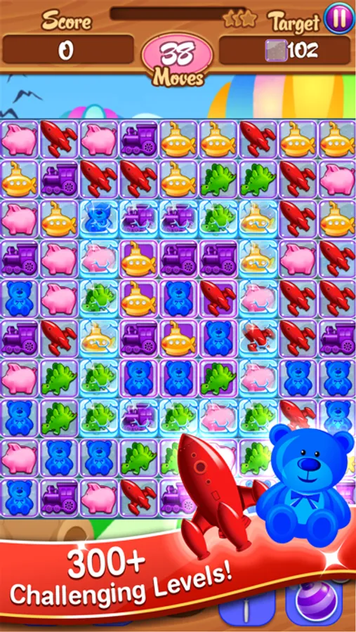 Toy Match will have you training your brain while having a blast! It’s the best toy match 3 game you’ll ever play with 300 fun levels, and best of all its free. To succeed you will have to think 2 or 3 moves ahead in order to beat some of these crazy toy puzzles! Toy Match is a must have if you love toy games. It’s a match 3 puzzle game for all ages including kids and adults. Toy Match 3 Blast will give you tons of fun with specially designed levels that can all be beaten without boosters with a little bit of luck and a lot of user skill of course.