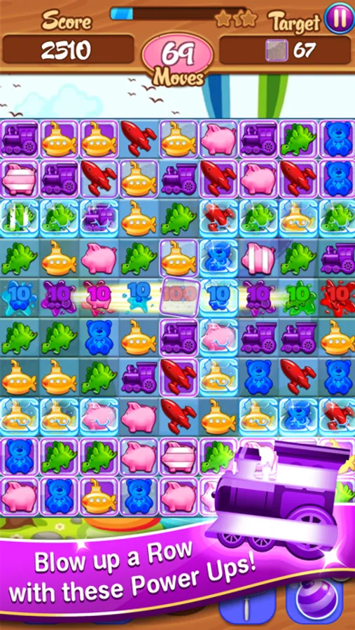 Touch and swap the toys to match 3 or more of the same color to pop and crush them. Match them in horizontal or vertical lines and they’ll be popped. Remember you’ll have a limit to the number of moves or time to clear each level in this toy frenzy, so be quick but make sure to think. Move wisely, think ahead and complete your target to clear the level and proceed to the next one. Think of it as chess, sometimes it is better to predict where a piece will be next to create a powerful power up.