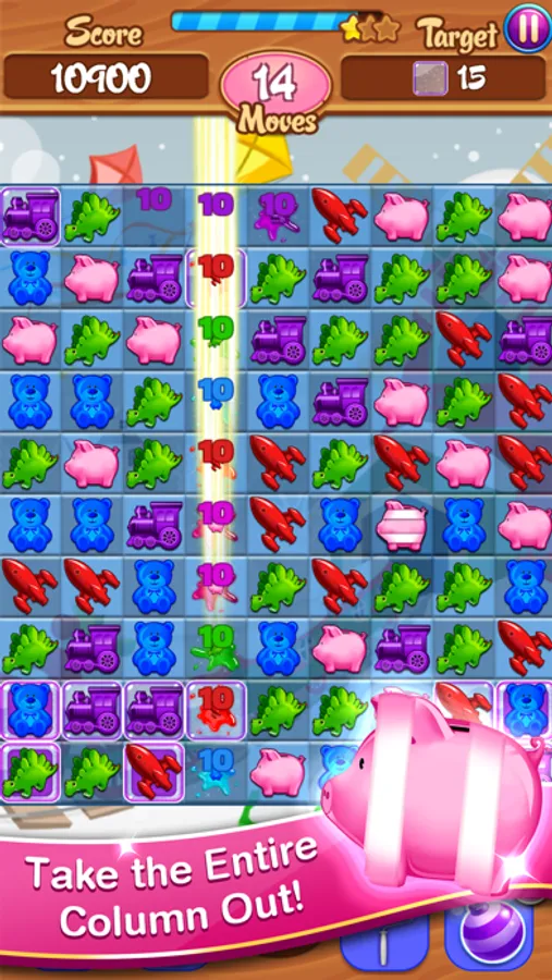- Match 4 on a line to create a vertical or horizontal toy blast that can help you wipe out an entire row or column.