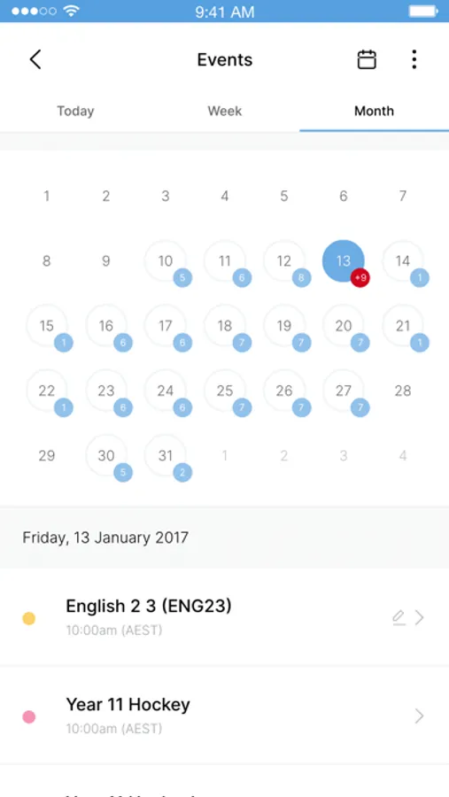 Calendar: the Calendar provides parents, teachers and students a personalised view of what's coming up for the day or in the future. Students can also receive reminders when the due date for their work is approaching