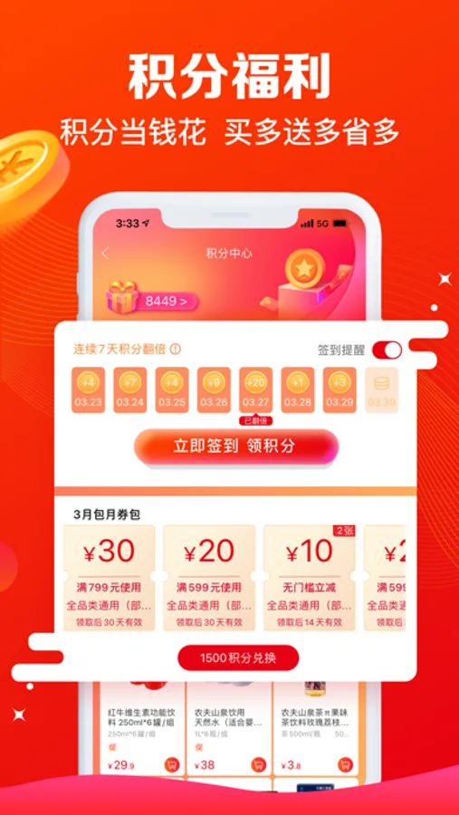 【积分抵现 买多省多】 购物即返积分,满一定金额可享多倍积分,积分可抵现金、兑换优惠券。
