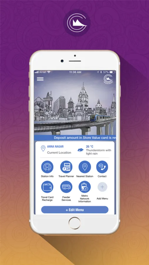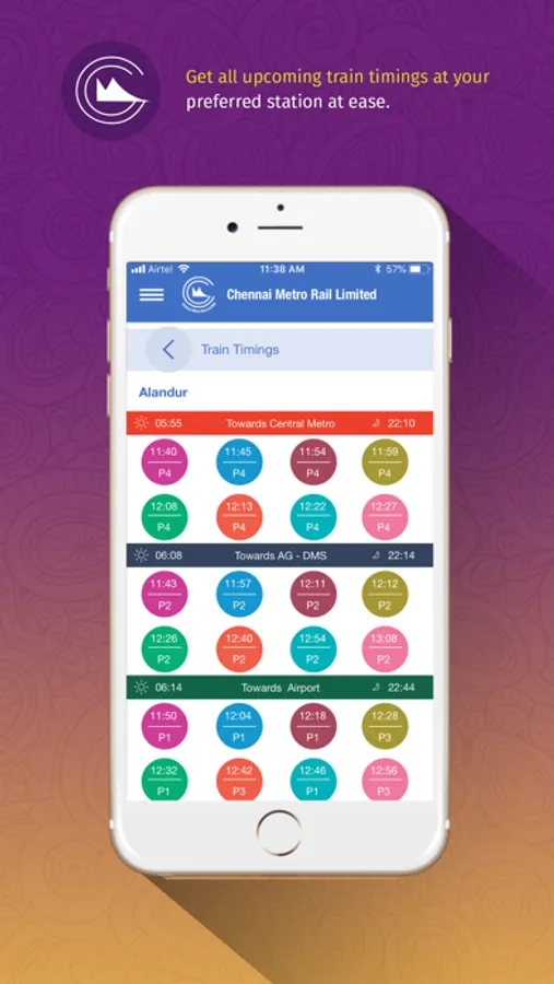 The CMRL mobile app ensures user friendliness by enabling easy access to information. The menus can be sorted out as per user convenience for quick access on favorite modules. While planning your trip, be sure to look around our app for easy travel experience. Download our mobile app now.