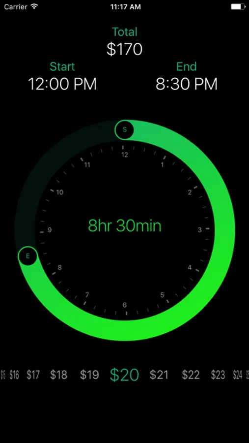 Simply drag the ring to set the hours and scroll to select your hourly rate.