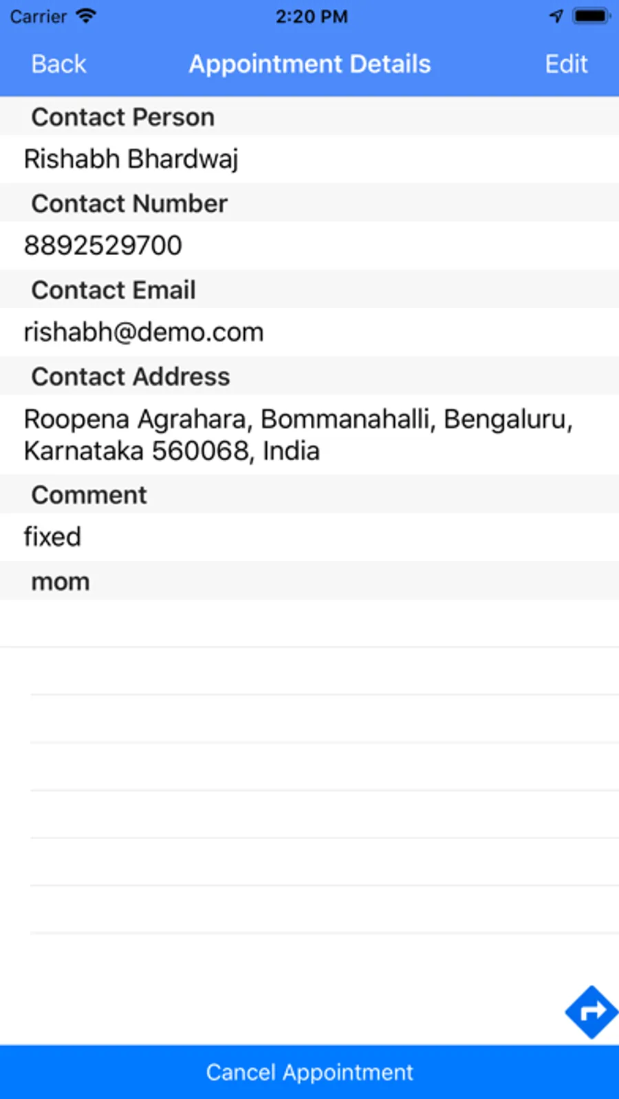 • Notification for scheduled appointments.