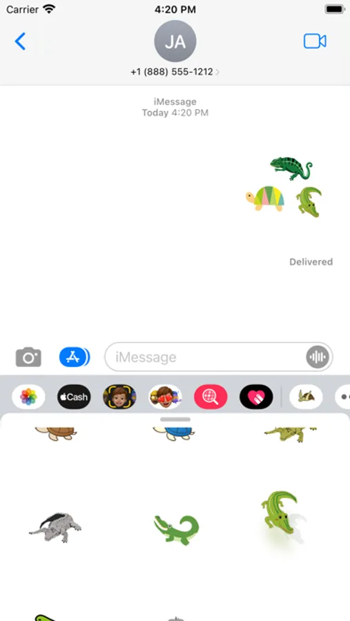 Attached to the message is a cute, reptile sticker