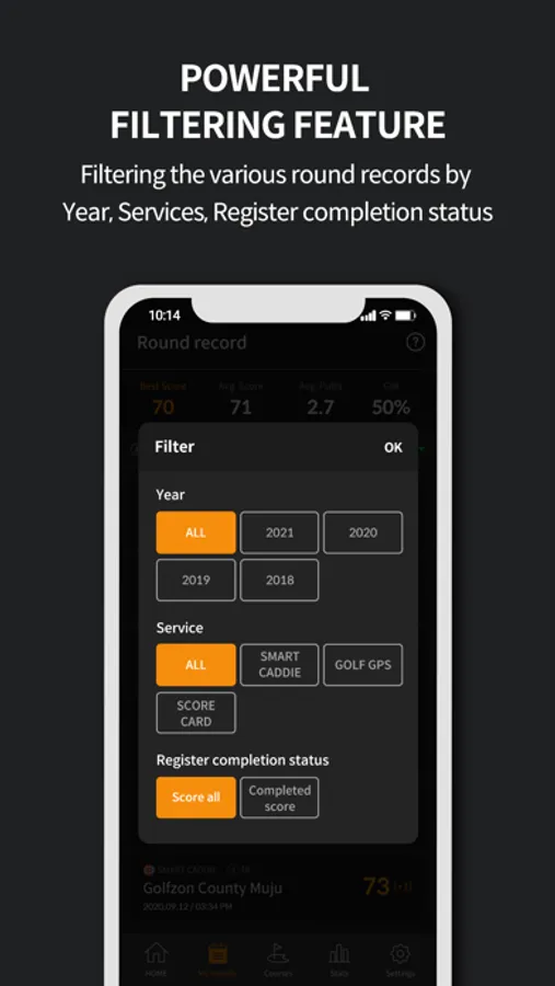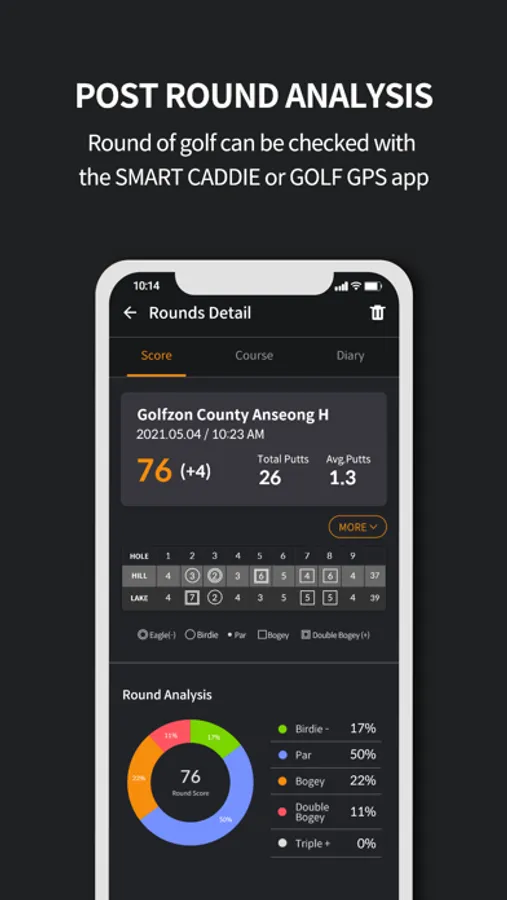 - Review all your recorded scorecards in the GOLF GPS App and SMART CADDIE App