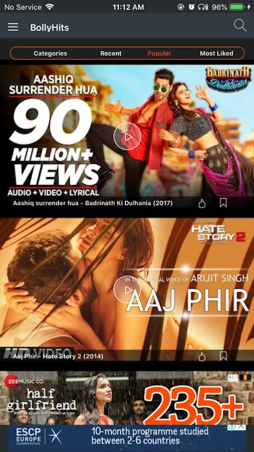 A beautiful app dedicating to Hindi song lovers all over the world. Yes, beautiful and selective! We are more systematic and provide our Bollywood song fans a better listening experience. Songs from different resources are collected and organized in a well defined manner in which listener doesn't want to waste much time searching for their favorite Hindi song video.