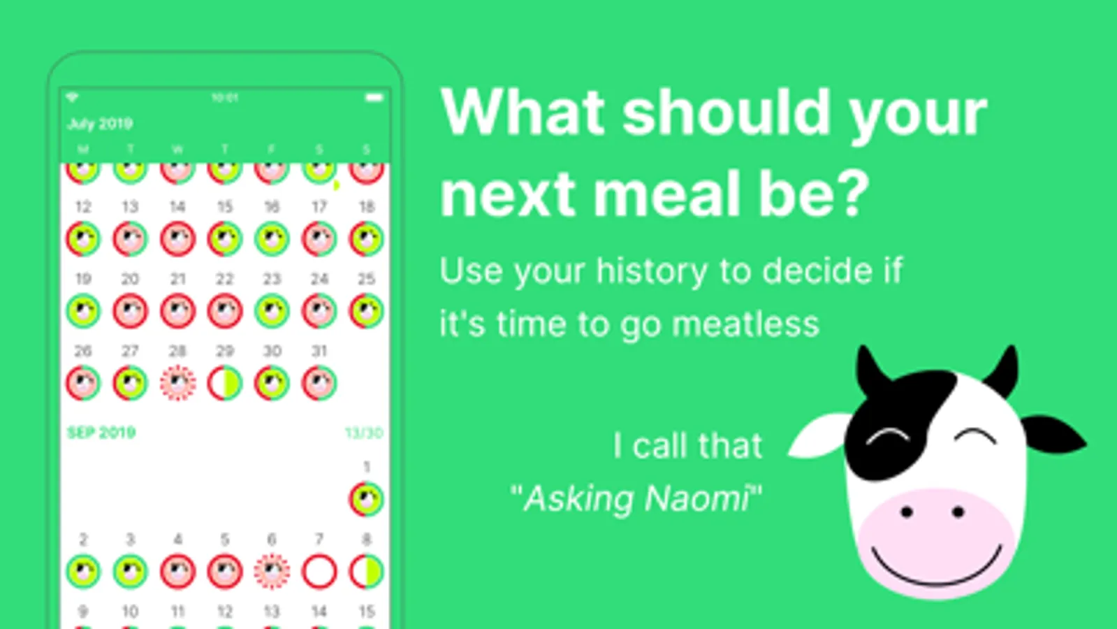 The most friendly of them is your personal cowch, Naomi, as in Naomi’t Today, and she will accompany you on your journey to eat less meat.