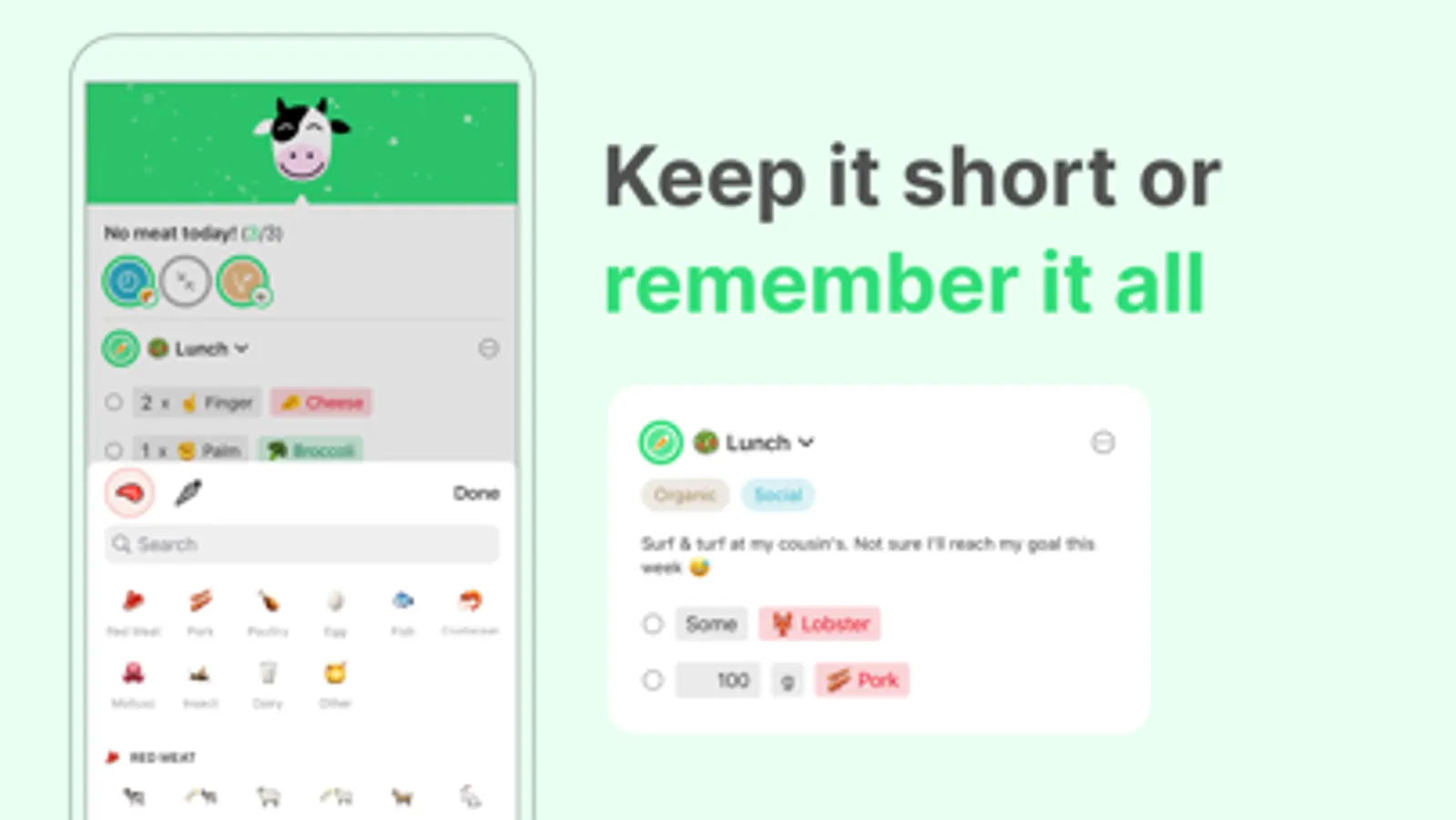 No Meat Today makes tracking your meatless meals in a fun & simple way, whether you want to progressively adopt a vegan diet or find a flexitarian balance that suits you.
