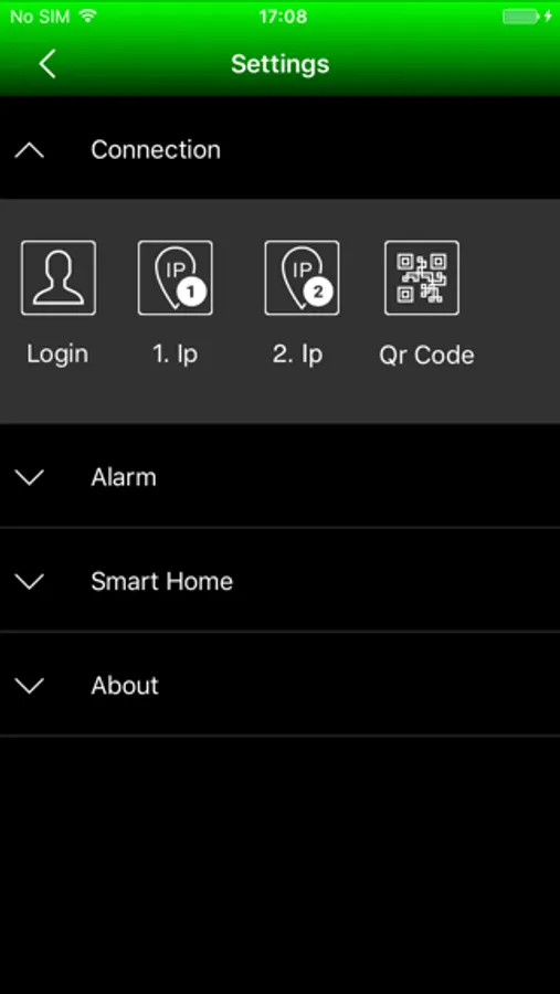 Connect to your Multitek home panel by setting Primary IP, secondary IP, username and password that is set on the panel. Primary IP is only required for connection over Wi-Fi. Secondary IP is required for connection over cellular. Port values must be the same with the value you set in your home panel (Settings → Smartphone Connection → Port).