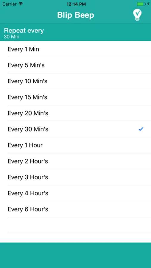 Simple time reminder plays sounds regularly (1 Min, 5 Min, 10 Min, 15 Min, 20 Min, 30 Min, 1 Hour, 2 Hour, 3 Hour, 4 Hour, 6 Hour).