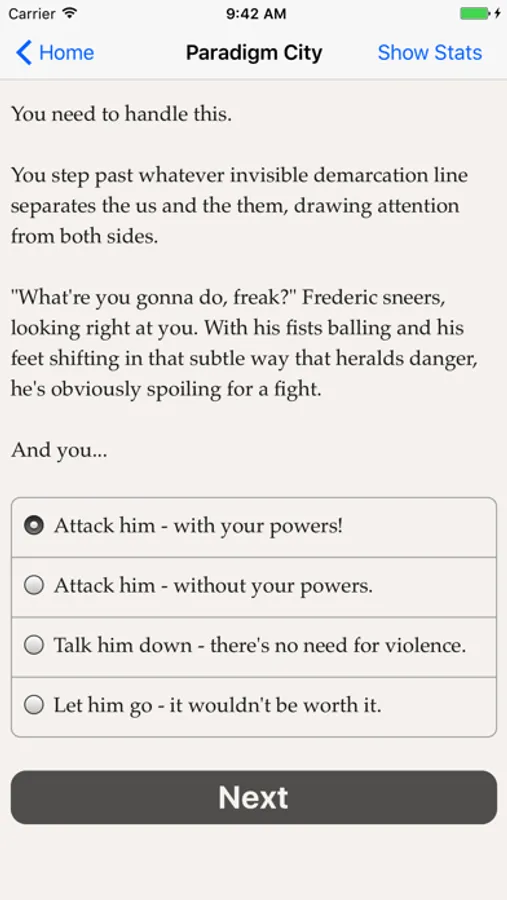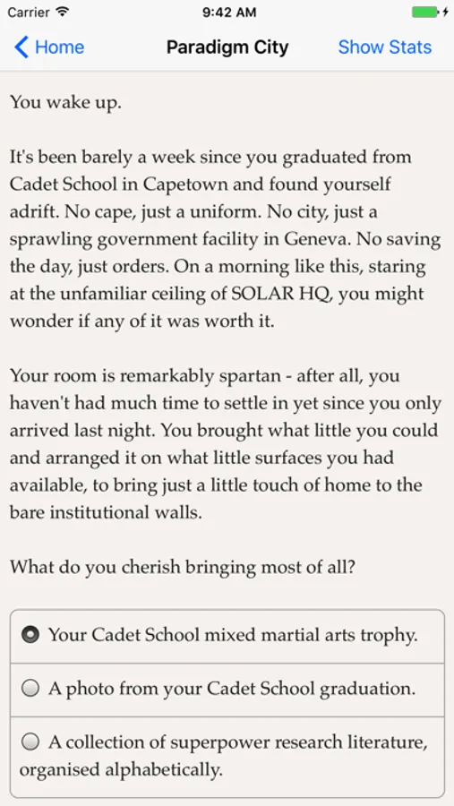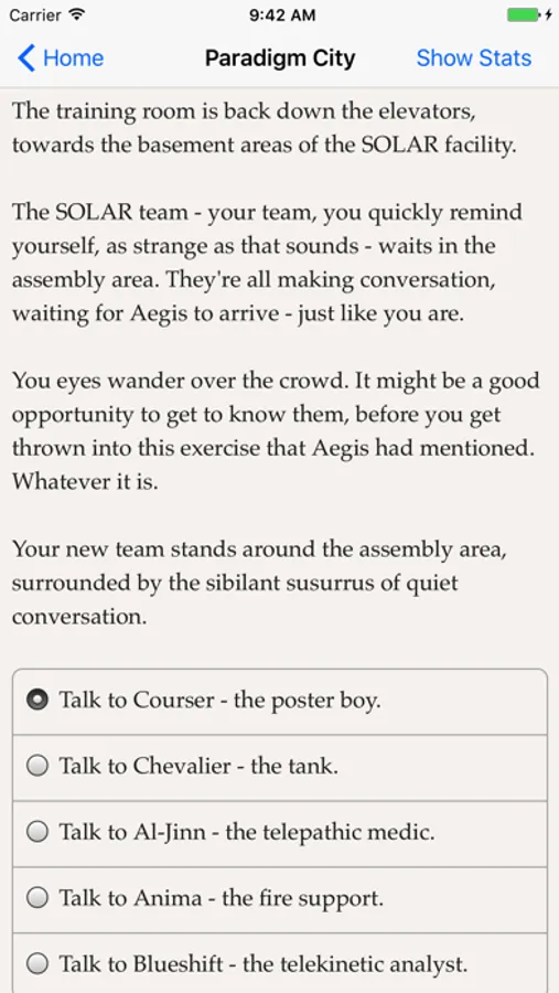 "Paradigm City" is a 110,000 word interactive fantasy novel by James Rhoden, where your choices control the story. It's entirely text-based—without graphics or sound effects—and fueled by the vast, unstoppable power of your imagination.