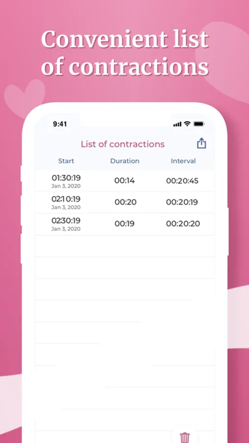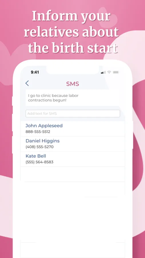 - It can send your relatives with SMS to inform them that you need to go to maternity home after analyzing contractions progress